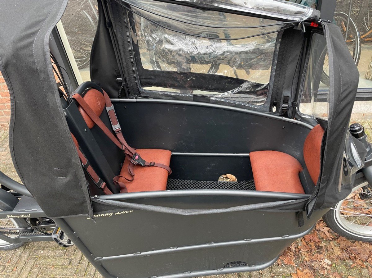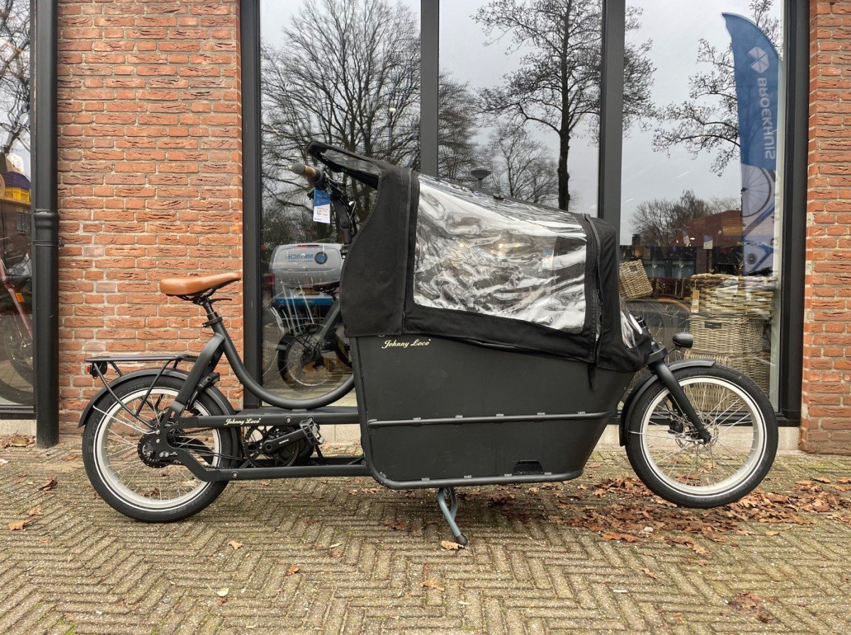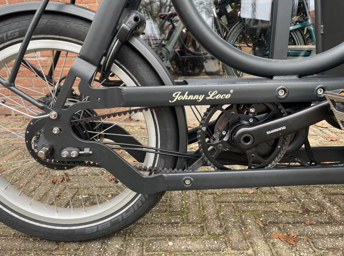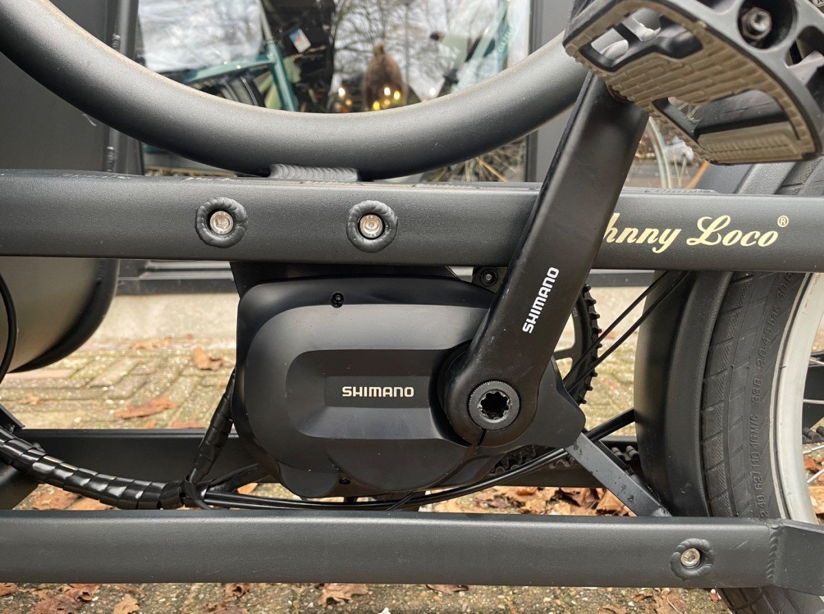 Mooie elektrische bakfiets van Johnny Loco. De fiets is voorzien van een Shimano motor en de fiets heeft een lage km stand.