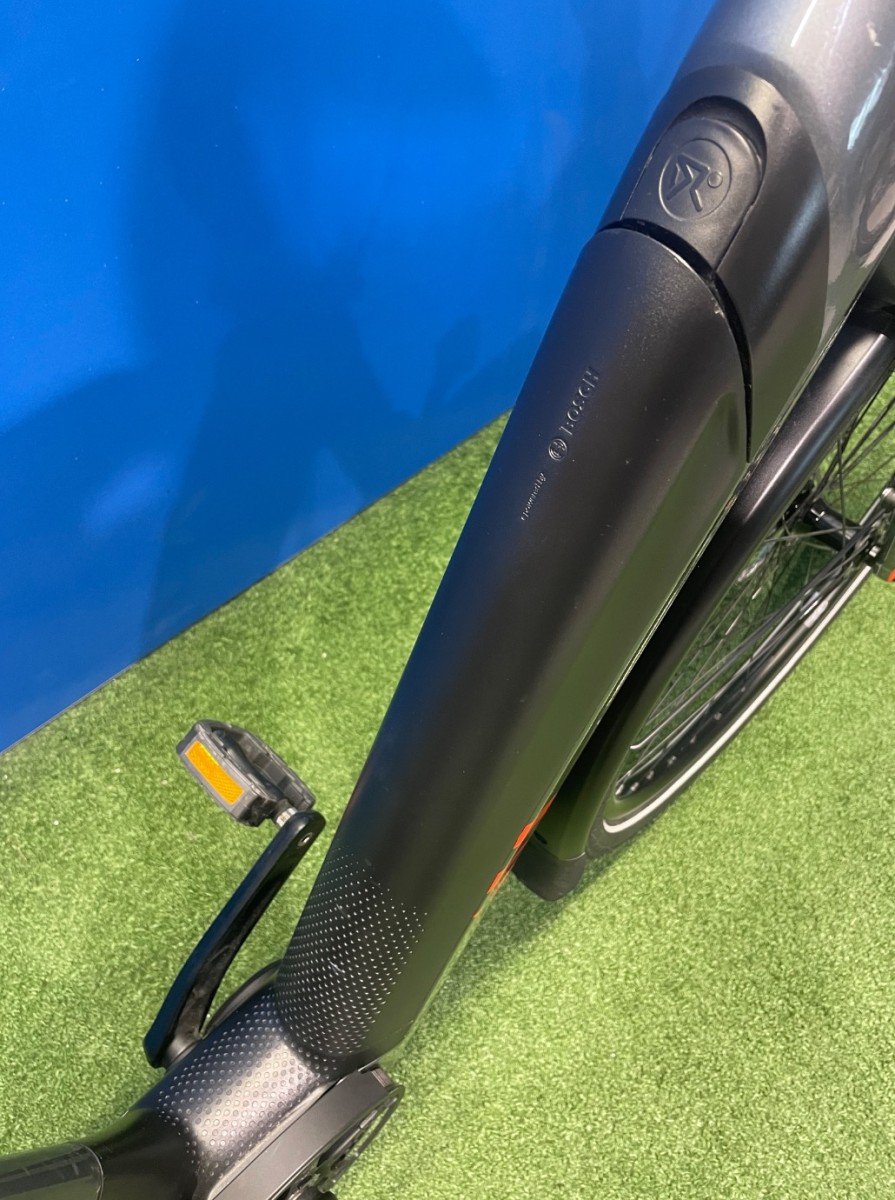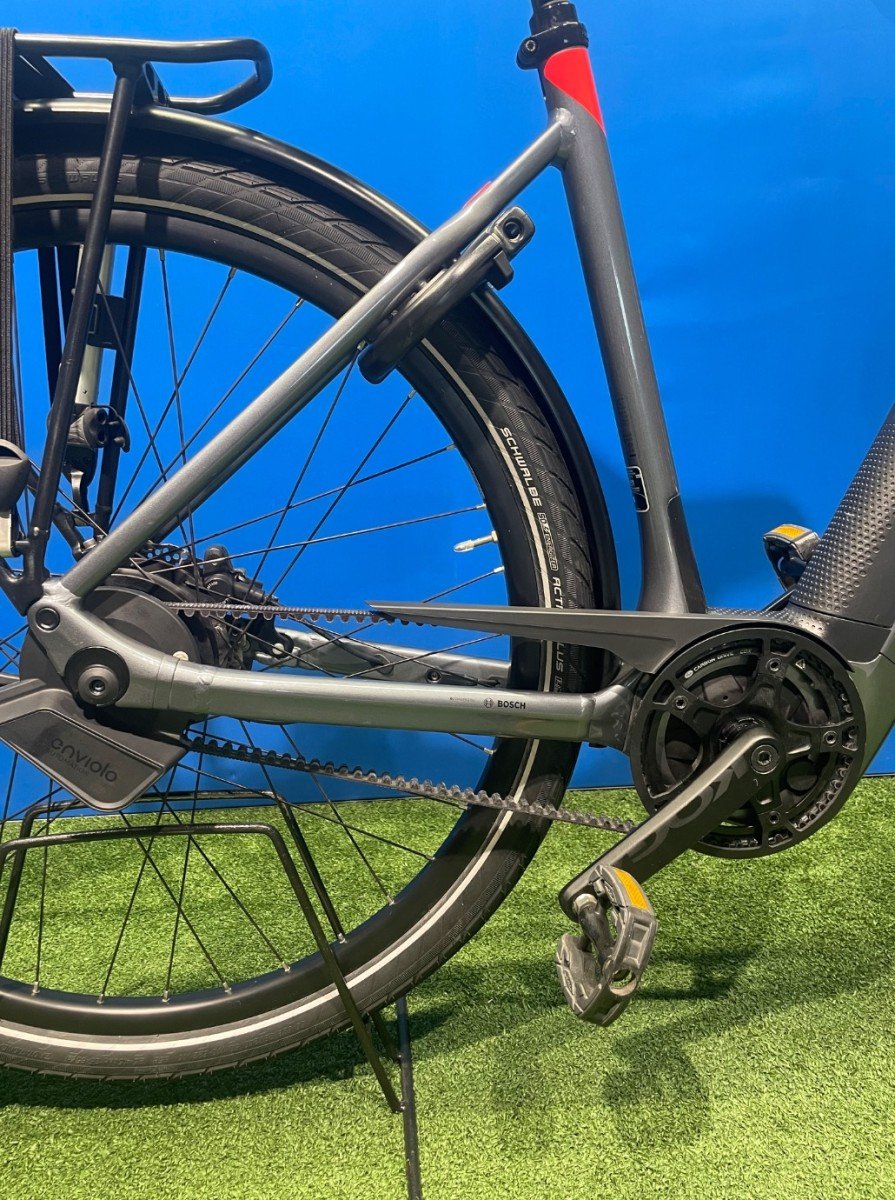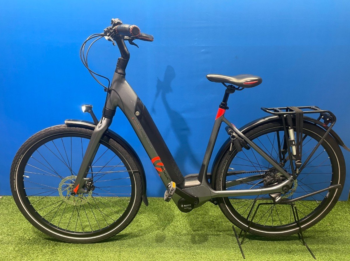 Mooie elektrische Koga met Bosch Active Line middenmotor. De fiets is voorzien van een riem en de fiets heeft een automatische functie.