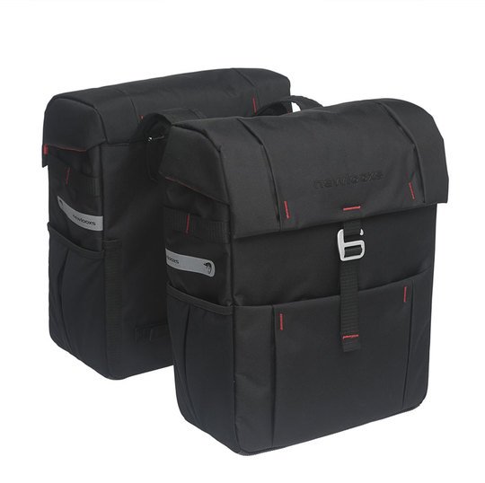 New Looxs dubbele tas Vigo Black, 37 liter, 31 x 40 x 15 cm (2x), Hoofdvak met extra kleinere vakken, Bevestiging met riempjes, past altijd! Gemaakt van waterdicht polyester. Doordat de klep over de tas heen valt, is de tas goed waterafstotend voor kleinere regenbuien. Wil je dat de tas ook zware regenbuien doorstaat? Maak dan gebruik van een New Looxs regenhoes. Hiermee maak je iedere fietstas waterdicht.